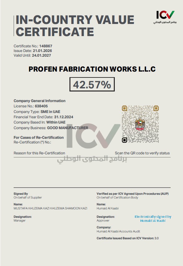 At PROFEN Fabrication Works LLC, quality is at the core of everything we do. From concept to completion, we ensure each product meets the highest standards of safety, performance, and finish.